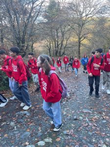 Como todos los sábados quedamos con nuestra guía y el otro grupo en el parking del hotel cerca de la escuela, y sobre las 10 h nos recogió el autobús para llevarnos a Glendalough. ¡Volvimos a tener mucha suerte porque el día estaba perfecto para hacer senderismo! El valle otoñal estaba lleno de color y paisajes de postal, con esos lagos misteriosos y las colinas verdes. Nos encantó.