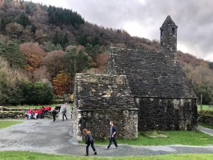 Y llegó el sábado y tuvimos otra excursión… ¡hahahaha! Esta vez fuimos a Glendalough, un valle glaciar al sur de Dublín, en el condado de Wicklow. Es famoso por su antiguo asentamiento monástico: fue fundado en el siglo VI por San Kevin, y con el tiempo se convirtió en una auténtica “ciudad monástica”.