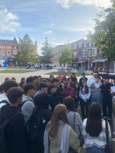 donde fuimos encontrando pistas que formaban palabras. Me acoplé al grupo de los chicos porque no quería perderme una actividad tan chula. Tras resolver un crucigrama sobre piratas y juntar las 9 palabras secretas, descubrimos que el tesoro estaba en ‘Manor Gardens’ -el nombre de los jardines principales de la ciudad- debajo del ‘Oak Tree’ o Roble, en español. Llegamos segundos, pero como acertamos todas las respuestas, también conseguimos una bolsa de chuches 🍬.