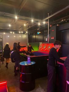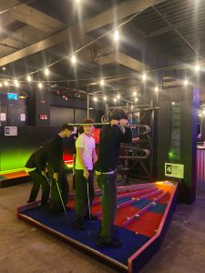 Imaginad un campo de golf, pero cambiando los palos y las pelotas pequeñas por… ¡una pelota de fútbol y nuestras propias piernas! 😅 Cada hoyo era más complejo que el anterior, ¡fue un verdadero reto! Pero, al tener que pensar en cómo golear la pelota con estrategias y obstáculos diferentes para cada hoyo, pudimos entretenernos y pasar un muy buen rato.