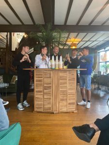 Despues disfrutaron de tiempo libre hasta que volvimos a Exmouth para prepararnos para la fiesta de despedida en el local del club de rugby. … fue una noche inolvidable …