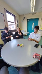 Como ya os comenté en alguna ocasión no se nos permite asistir a las clases de español por si los ingleses se sienten juzgados por nosotros a la hora de hablar así que nos vamos a la biblioteca. Por lo general nos sentamos a charlar en bajito (unos más que otros) pero hoy Sara tuvo la brillante idea de traer el UNO!!!