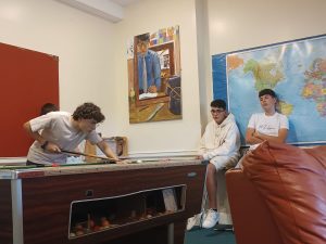 El lunes 2, por ejemplo, quisieron  empezar un “club de billar” que acabó con la mitad de los miembros grabando TikToks, así que pienso que un club de bailes virales nos vendría mejor. Por suerte tuvieron oportunidad de poner a prueba sus dotes musicales en nuestra actividad de la noche, ya que el lunes tocó… ¡karaoke! Pusimos a prueba sus conocimientos de letras en inglés, reconocimiento de canciones famosas o su capacidad para cantar como grupo a pleno pulmón e incluso acompañando con alguna coreografía canciones de ABBA, Miley Cyrus, Queen, Daddy Yankee… Un buen batiburrillo para todos los gustos.