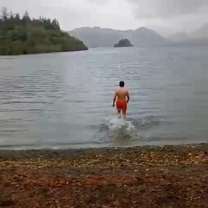 Además, no os lo vais a creer, pero Pedro tuvo la grandísima valentía de bañarse en el lago!! A 10 ºC y lloviendo! 🥶🥶