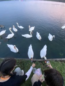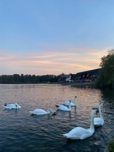 El sábado tuvimos free day con nuestras familias pero por la tarde algunos quedamos para dar un paseo. Fuimos hasta Campbell Park, un parque super bonito y enorme, desde donde podíamos ver una noria a lo lejos. La noria estaba en Willen Lake, a unos 20 minutos caminando desde donde estábamos, así que decidimos irnos para allí. Nos montamos en la noria, comimos algodón dulce y tomamos granizados de colores 🍧🍬. También nos acercamos al lago a ver los cisnes y disfrutar de una bonita puesta de sol.