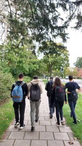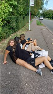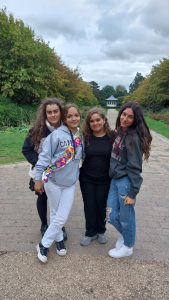Comezamos o venres con moitas ganas, desta vez en ve, de ir a clase tocou camiñata de sendeirismo con Mr Currie (un dos profes de deportes que por certo é moi riquiño e todos os nenos e nenas o adoran), fomos camiñando por pastos cheos de vacas e máis dun ía preocupado de non manchar os tenis…outras ian perfectamente vestidas para a ocasión, véxase foto: