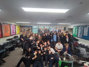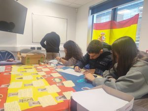 Al ser el jefe del departamento de idiomas, se encarga de nuestra integración escolar y de que estemos a gusto. Este mural estará colgado en la pared de The King’s School durante un año, hasta que los siguiente grupo llegue.