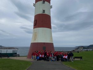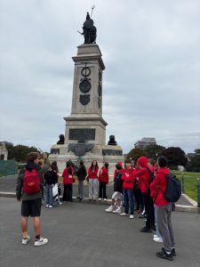 Nuestra primera parada del tour fue la catedral, y de ahí caminamos por el Hoe Park hasta el Naval Memorial. Paseamos por el frente marítimo y nos sacamos una foto de supergrupo en la Smeaton’s Tower 🤗.