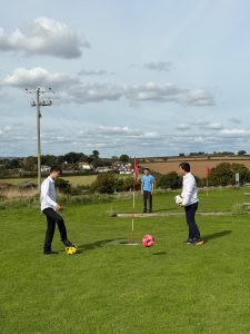 Hoy por la mañana, el grupo volvió a su integración en el instituto, y cuando acabó, fuimos en bus hasta Lympstone, una pequeña localidad del condado de Devon, donde nos esperaba nuestro monitor inglés. La actividad de hoy fue Footgolf y, como su nombre indica, se trató de conseguir meter los balones en los distintos hoyos mediante patadas. ¡Los chicos lo pasaron genial!