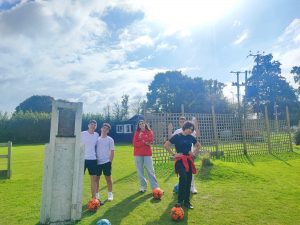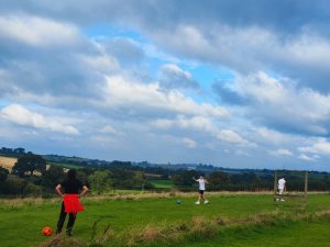 Este juego es muy parecido al deporte del golf, pero con la diferencia de que se usa una pelota de fútbol, por lo que vuestros hijos e hijas apuntaban con el pie y tenían que meter la pelota en los diferentes agujeros con el menor de tiros posibles.