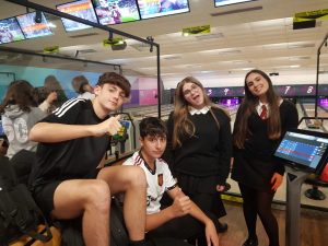 Después se las clases fuimos a la bolera donde todos iban a jugar por grupos varias partidas de bolos y realmente lo pasaron de maravilla! También aprovecharon para relacionarse con el otro grupo de Swansea. El establecimiento tenía servicio de cafetería con lo cual pudieron tomar algún snack o refresco. Ya al terminar se dirigieron al quadrant a coger el autobús e ir a sus casas después de una jornada intensa.