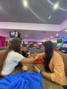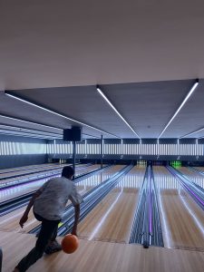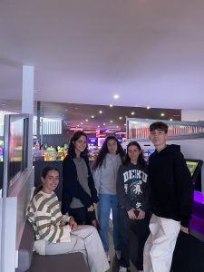 Tuvimos el privilegio de terminar las clases 15 minutos antes para poder coger el bus con tiempo e ir a la bolera 🎳. Llegamos al Tenpin, una sala de recreativos, laser tag, escape rooms y con hasta 20 pistas de bowling 😱. Nos dividimos en 4 grupos y jugamos 2 partidas, ya que solo con una se nos hacía muy corto y alguno necesitaba revancha jajaja. Al terminar, algunos decidieron almorzar/merendar pizzas, hamburguesas y patatas 🍕🍟🍔.