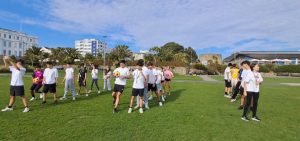 Hoy tocó moverse un poco más. Aprovechando el clima veraniego, nos dirigimos a la costa para disfrutar de juegos tradicionales: desde el famoso “luz verde, luz roja” al estilo El juego del calamar, hasta carreras de carretillas y otras dinámicas que sacaron carcajadas y pusieron a prueba el equilibrio. Después del esfuerzo, llegó la recompensa: el tan esperado tiempo libre en el centro🛍🍔🍟.