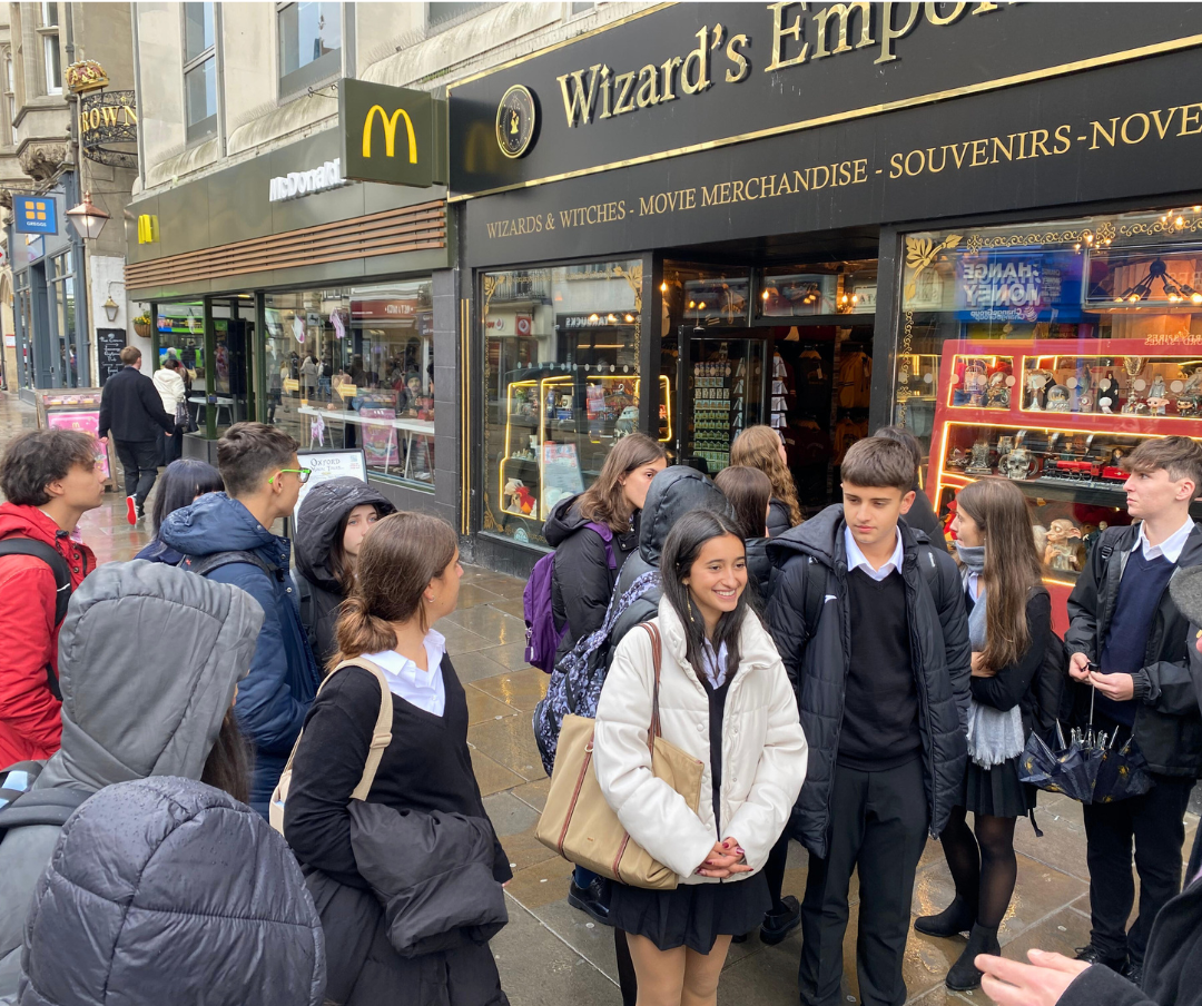 Al día siguiente, nos reunimos en Carfax Tower con nuestra profe favorita, Juanita, quien nos llevó a la escuela, ¡Greyfriars Catholic School! La mañana comenzó con una clase de inglés para evaluar nuestro nivel y una clase introductoria donde nos explicaron todas las normas y horarios. Después, ¡vino el descanso y la comida!