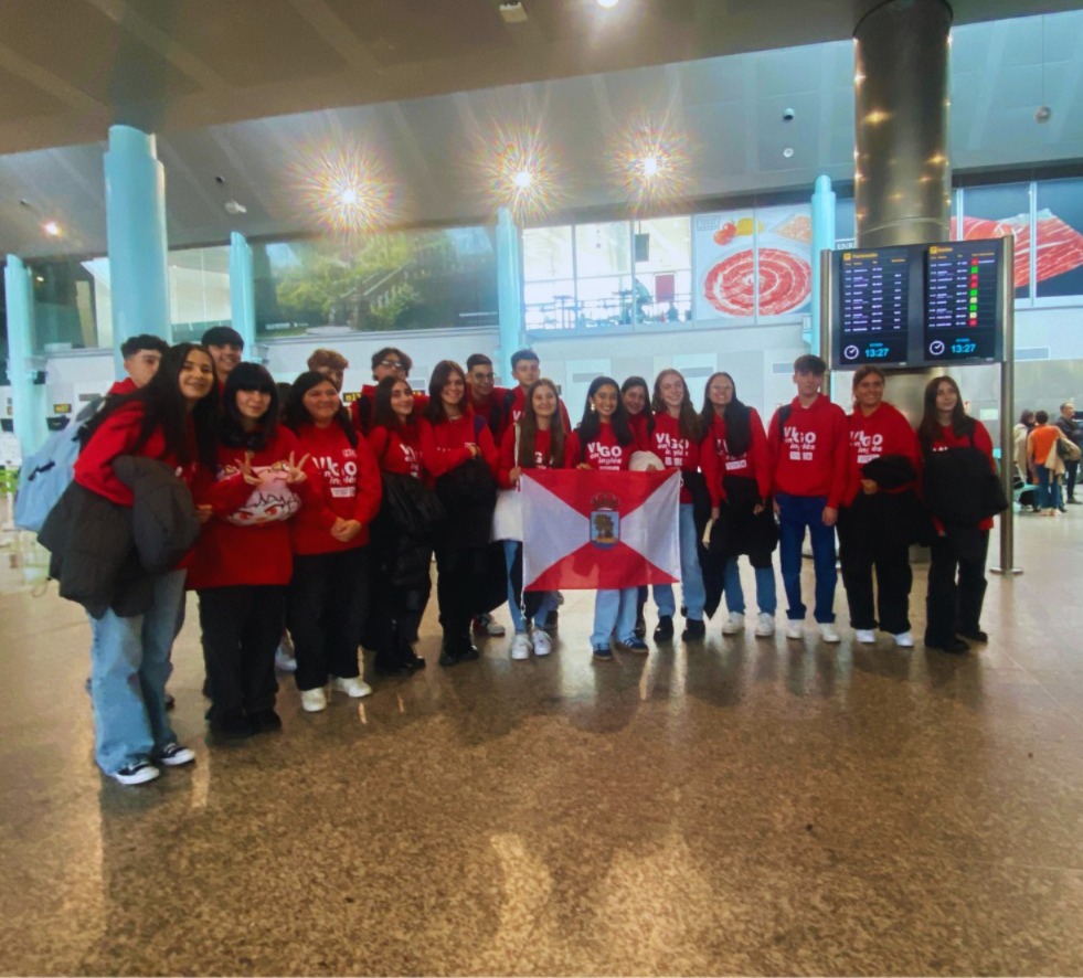 Comenzando con la aventura en el aeropuerto, ¡fue todo un espectáculo! Había un montón de asientos disponibles en el avión, ¡pero nosotros ocupamos la mayoría! Nos juntamos con compañeros de cuatro destinos en Inglaterra: Swansea, Devon, Oxford y Kidlington. Tuvimos un pequeño retraso en el embarque, ¡pero como éramos los del programa Vigo en Inglés, tuvieron que esperarnos! ¡Qué paciencia la de la tripulación! Aquí les dejo una fotito del grupo, ¡mirad qué guapos/as estamos!
