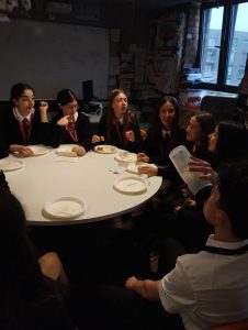 Este martes empieza con una workshop (quién diría que habría que convencerlos para sacarlos de clase de matemáticas…) y nuestra esperada competición de tortillas españolas. En el taller, un par de alumnos del Year 12 nos hablaron de la estrategia SWOT para el análisis de problemas de nuestra vida real. Hablamos de las emociones que sentimos al llegar a Liverpool, tanto de la felicidad como de los nervios y miedos, y jugamos a un juego de física con un calcetín para reflexionar sobre fortalezas y debilidades. Después de conocer la historia de Theo en su llegada a Liverpool desde Rumanía, estuvimos charlando de cómo enfrentar la decisión del año que viene: comenzar Bachillerato, FP, iniciarnos en el mundo laboral u otras posibilidades. Aquí podéis leer más sobre el análisis SWOT.