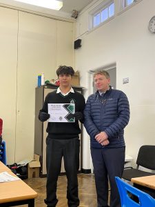 Al terminar la mañana, se les hizo entrega de los diplomas que acreditan el nivel alcanzado durante el programa (aunque confieso que no estoy del todo de acuerdo con algunas notas… ¡han aprendido un montón todos! 👏). Aquí os dejo unas fotos con el director del colegio 🎓