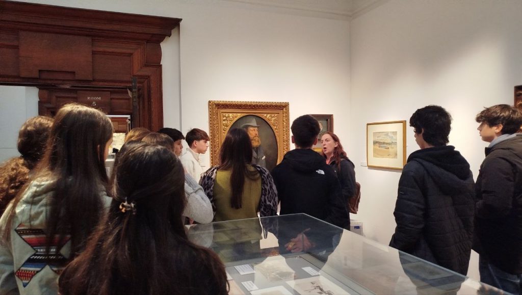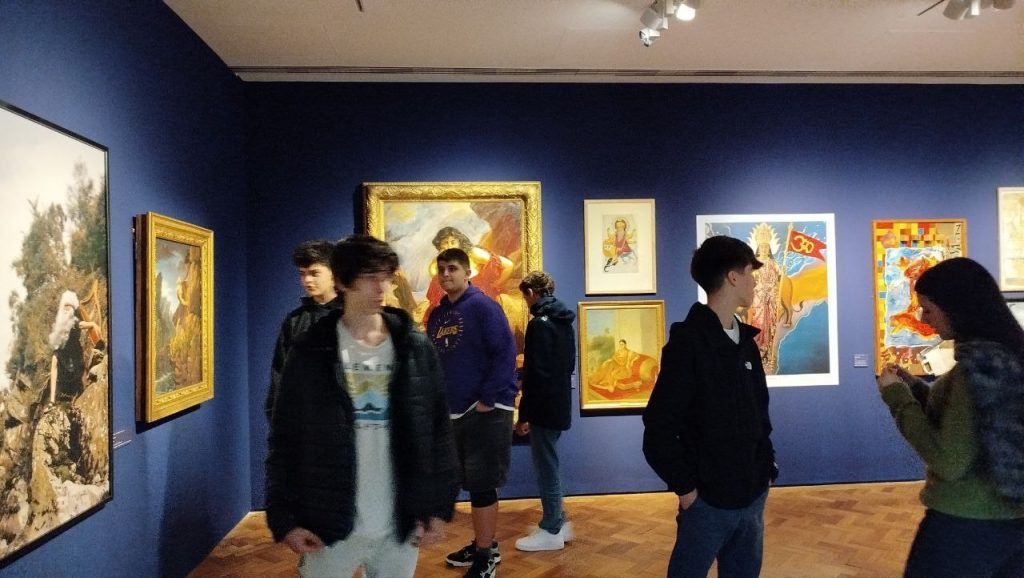 Las chicas y chicos recorrieron el museo buscando la obra que más captase su interés, para hacer un registro y una pequeña redacción sobre ella, que compartirán mañana en clase. Pudimos disfrutar de piezas de toda época, técnica y estilo: retratos, paisajes, arte contemporáneo, mixed media, téxtil… una colección para todos los gustos sin duda!!