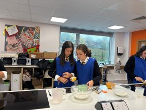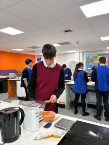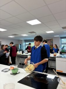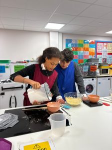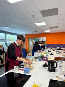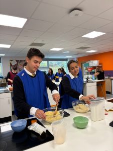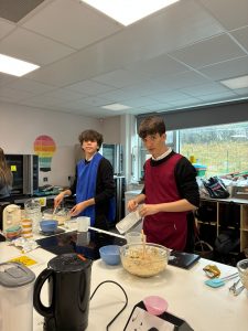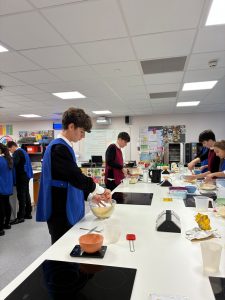 El martes fue un día increíble, nuestro penúltimo en el instituto, y no podía pasar desapercibido. Los profes organizaron una clase de cocina para todos los españoles y nos enseñaron a preparar un bizcocho típico de Gales. Al principio, hubo protestas por las pasas (¡cómo no!), pero al final todos se rindieron ante lo rico que estaba. Incluso hubo quien se lo acabó él solito.