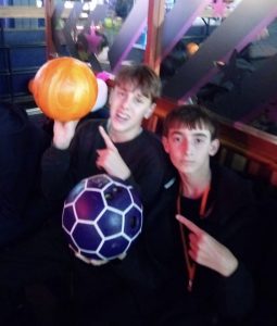 Y para finalizar el día, hemos cogido un bus para acercarnos a la bolera, echar unas partidas y sacar ese gen competitivo que llevamos dentro y que ya se vio en otras actividades como el fútbol o los dardos. Por suerte, en el local también había máquinas de arcade que a los que más habilidad y suerte tenían les dieron tickets que se podían canjear por distintos objetos, como unas cartas, unos patos de goma, y demás…