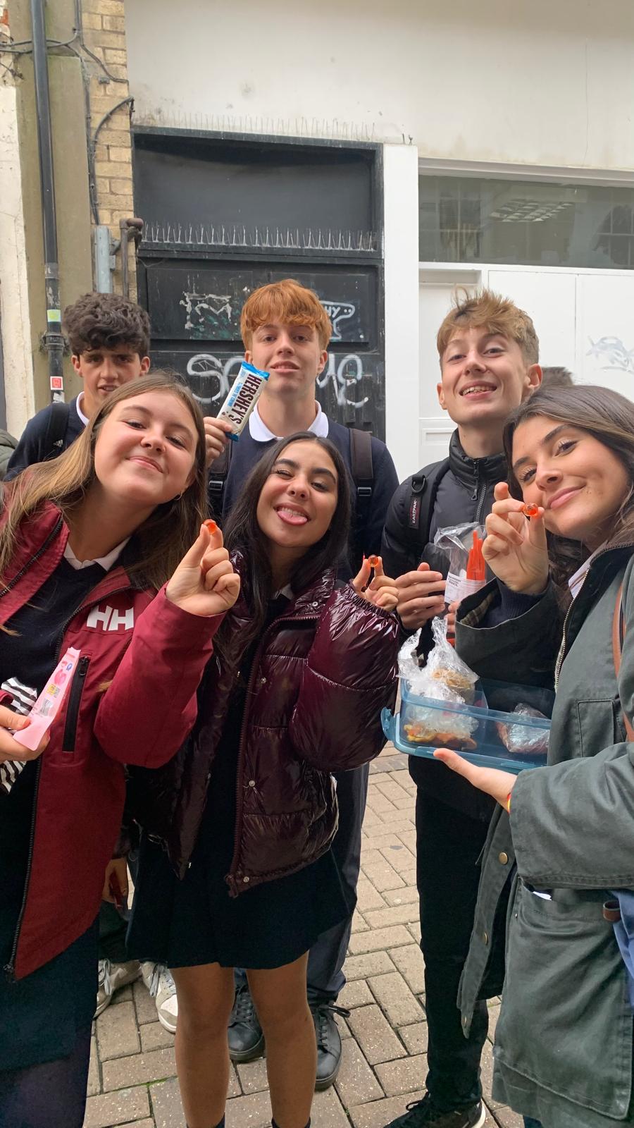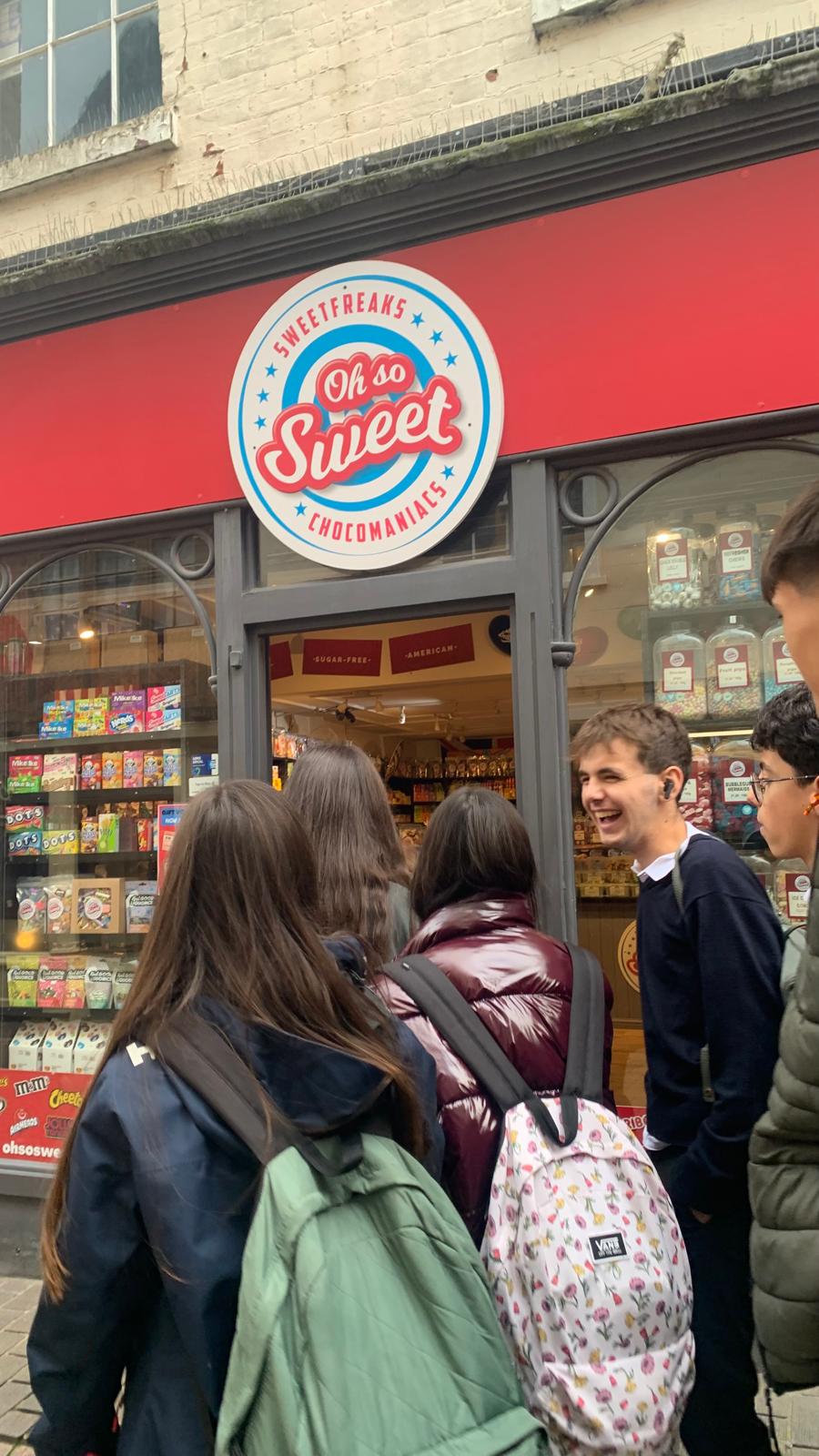 Antes de comezar fomos a a unha tenda de doces moi antigua e puidemos mercar cousas raras para probar. Entre elas Cloe probou unha chuche super ácida e case pota! Para xs demáis non era para tanto…