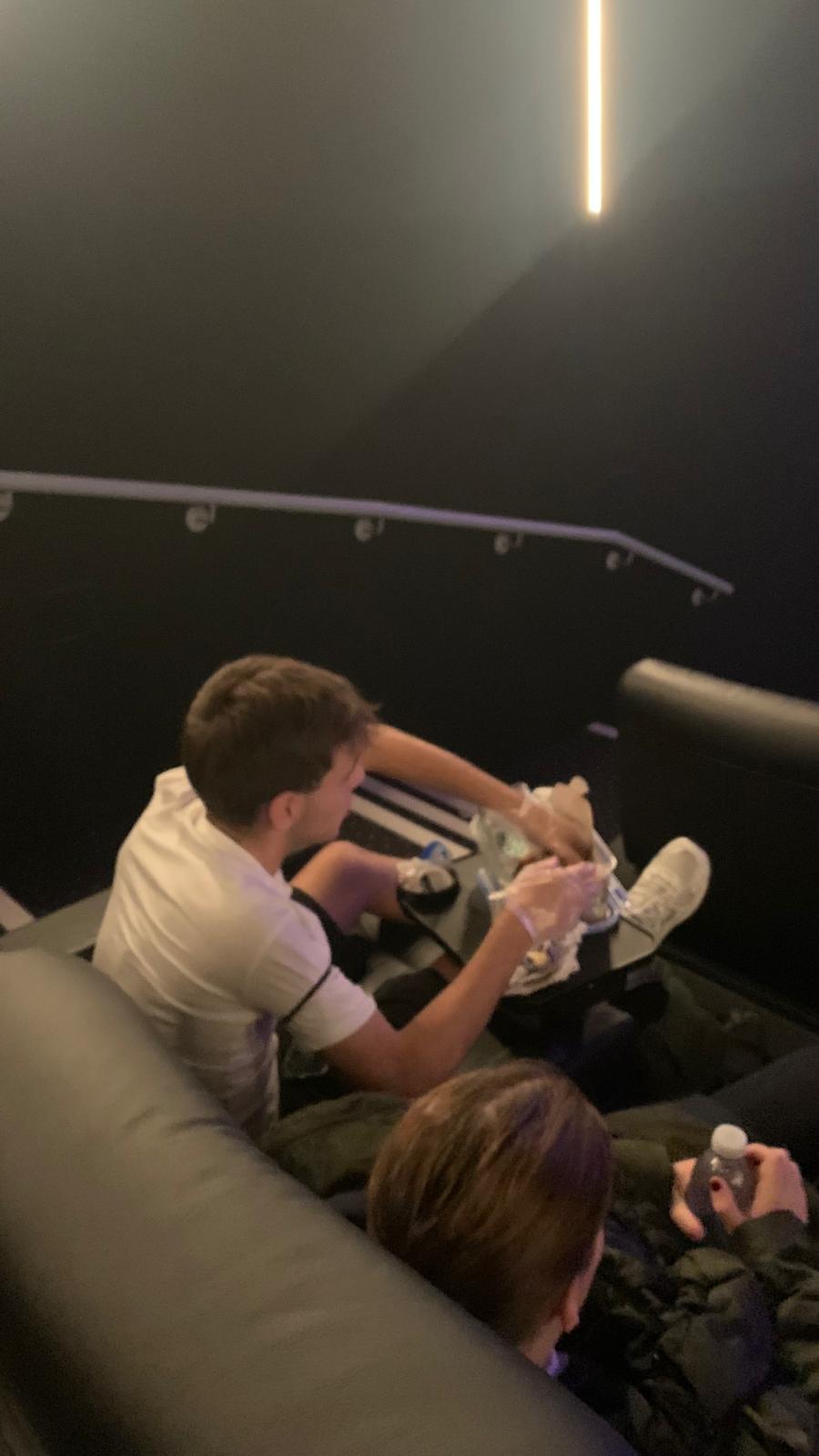 Pola tarde tocaba cine. Iamos ver Tron: Ares. En menuda sala de cine estabamos: asentos reclinables, bandexa para a comida, espazo para as pernas… totalmente VIP. E menudo banquete de comida montaron algúns.