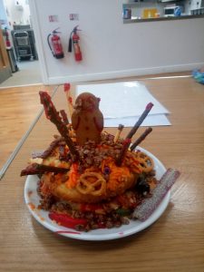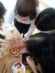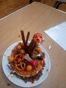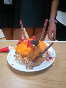 Ayer jueves, un día de mucha lluvia, pero por suerte fuimos a un taller de cocina donde las chicas hicieron escones y decoraron una Torta Victoria (según nos comentaron, muy típica del lugar) con motivos de Halloween. También, inventaron historias muy divertidas sobre lo personajes de sus tortas, que presentaron a todos (obviamente, en inglés).