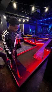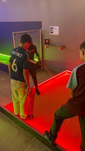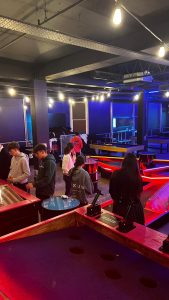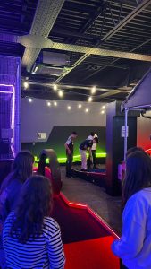 El lunes por la tarde fuimos a jugar al crazy golf a Exeter, que es como un minigolf pero lleno de luces y obstáculos extraños.