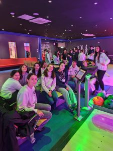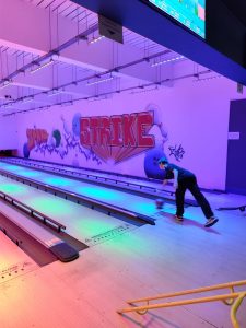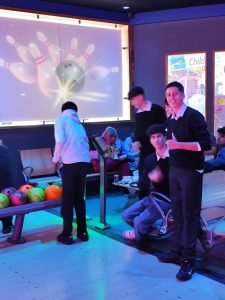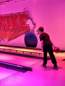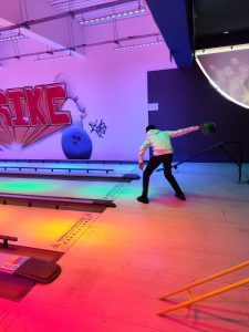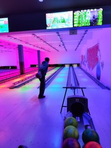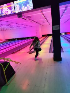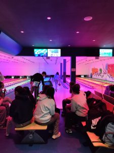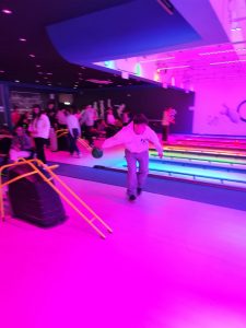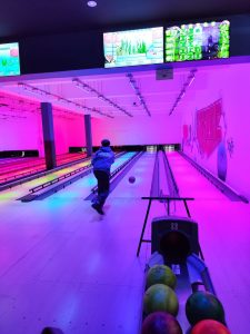 El martes teníamos planeado ir a la costa jurásica de Exmouth, pero el tiempo no acompañó, así que tuvimos que cambiar los planes y acabamos yendo a la bolera. Fue un acierto: se lo pasaron genial y hubo una energía muy positiva en todo momento.