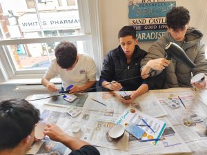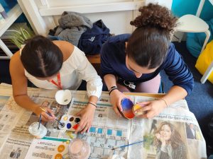 Por la tarde hicimos un taller de arte en las oficinas de Hello Exmouth. En esta ocasión, los chicos y chicas utilizaron su creatividad pintando el interior de cocos, y la verdad es que se lo tomaron muy en serio. Da gusto verlos tan metidos en la actividad, porque eso significa que se lo estaban pasando bien. Os dejo unas fotos de la actividad y el resultado final de esas obras de arte 🙂