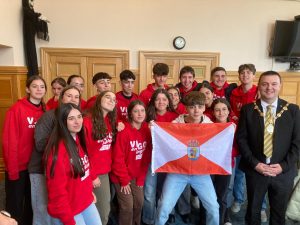 Por último, hoy, lunes 27, los chicos han empezado las clases otra vez, primero tendrán una semana para aclimatarse y la semana que viene comenzarán las clases. Hoy también tendrán el honor de conocer personalmente al alcalde de la ciudad, y este los guiará por el Guildhall, el edificio en el que se reúnen los miembros electos del Consejo de Distrito de Derry City y Strabane, es decir, uno de los edificios más importantes de la ciudad!